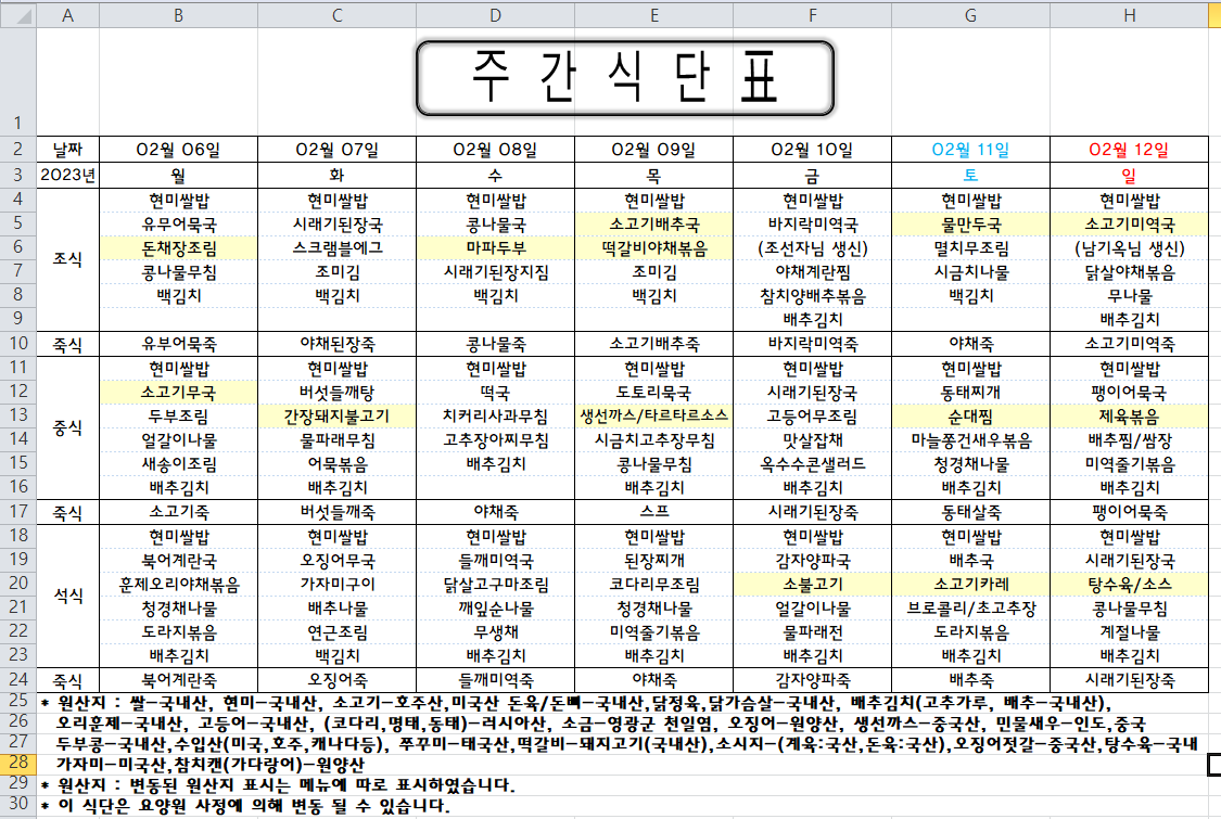 주간식단표 (2023.02.06 ~ 2023.02.12)