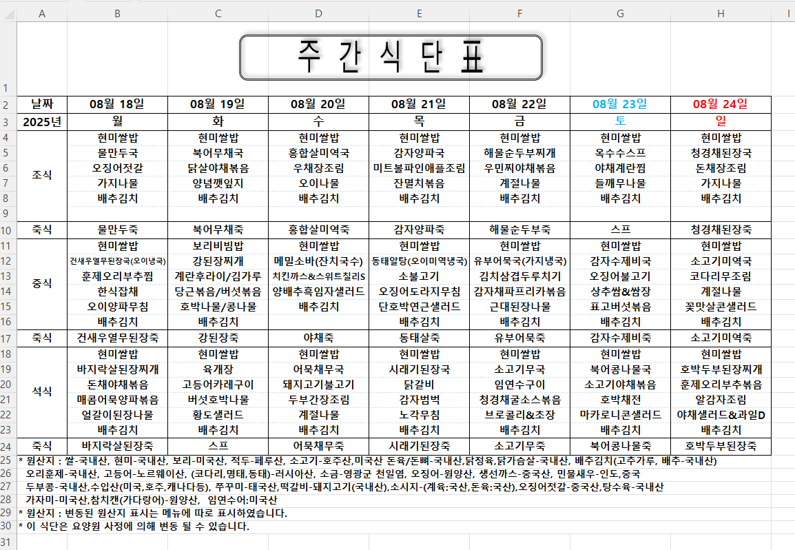 주간식단표 (2025.08.18 ~ 2025.08.24)