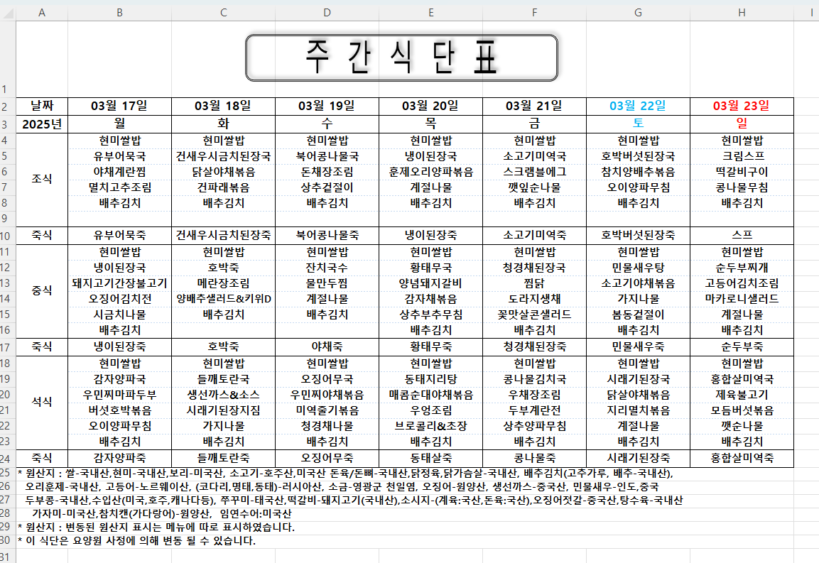 주간식단표 (2025.03.17 ~ 2025.03.23)