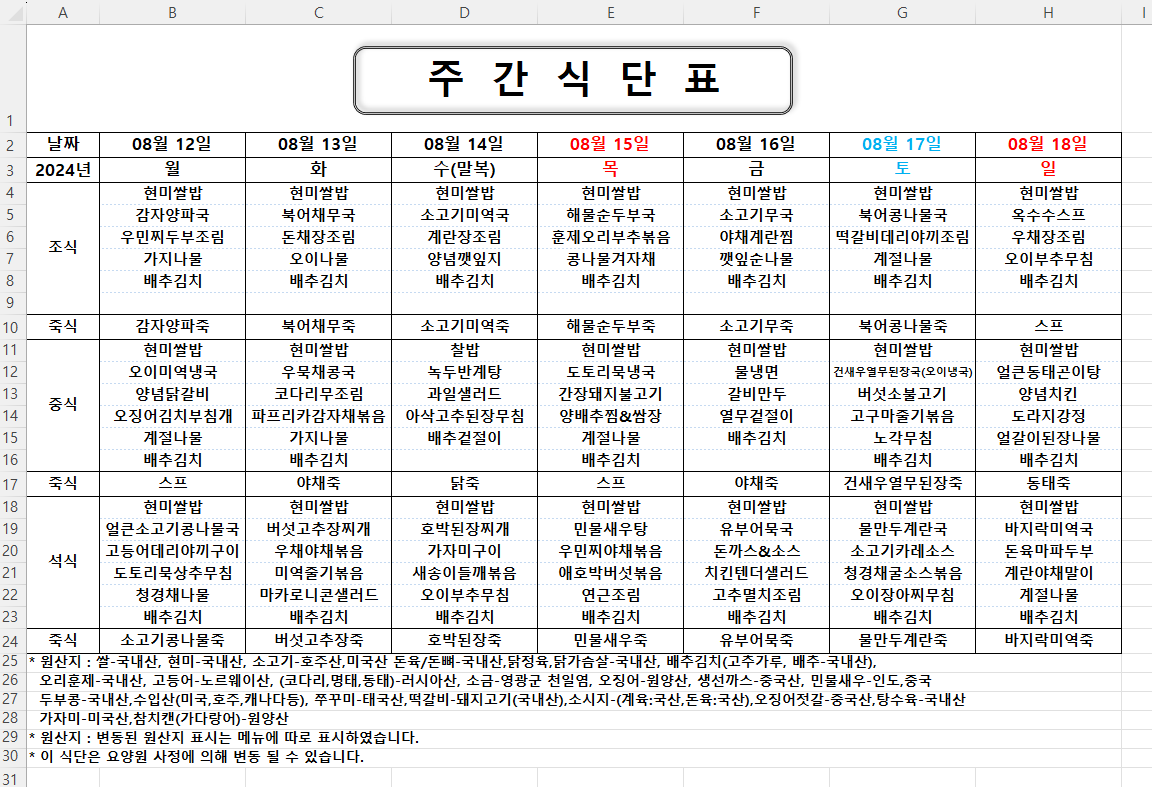 주간식단표 (2024.08.12 ~ 2024.08.18)