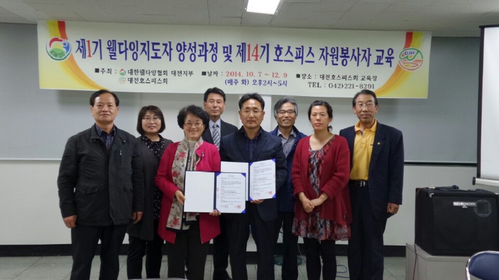 대전호스피스회와 해피니스요양원의 업무협약체계를 구성, 지역사회의 안정적인 발전에 공동으로 참여하며 봉사자를 양성하고 실습의뢰 등을 해피니스요양원과 연계하며 교육 프로그램 및 교육장, 실습시설 이용, 강사진 네트워크 구축, 정보공유하며 연계된 사업 상호 협력을 체결합니다.