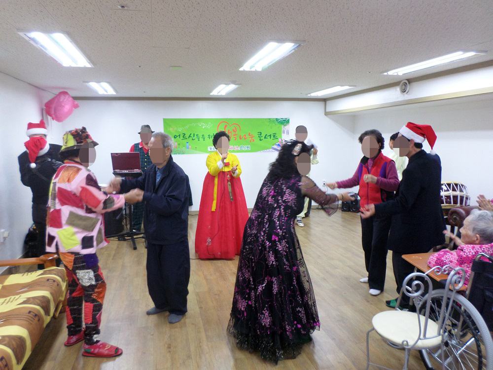 참사랑봉사회에서 어른신들을 위해 장기자랑, 노래, 부채춤 등 노래,연주를 들려주시고 어르신들께서 직접 춤과 노래를부르시며 즐거운 시간을 보내셨습니다.